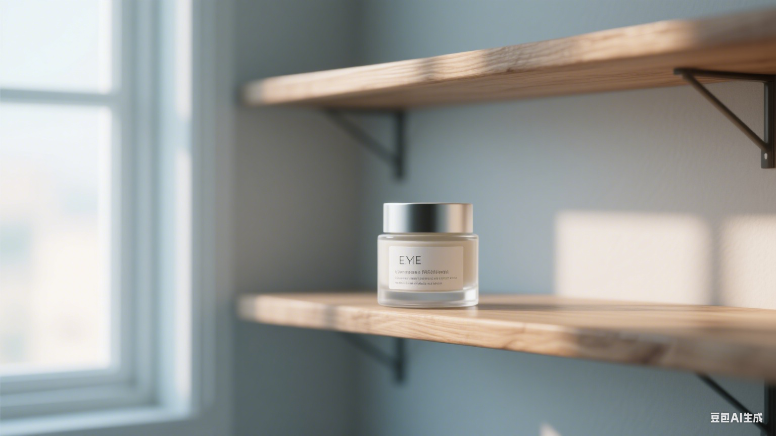 (Photo caption: The eye cream bottles are stored in a transparent storage box, placed in a cool corner of the bathroom. There is a label on the storage box that says "Cool and Dry Storage", and a small plate of desiccant is placed next to it to keep the environment dry.)